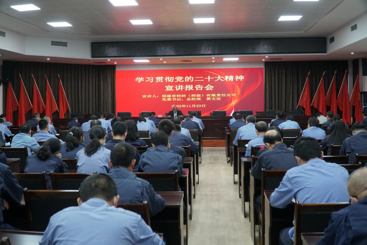 11月23日,福建輕紡黨委書記、總經(jīng)理黃文定到青山紙業(yè)宣講黨的二十大精神。青山紙業(yè)公司領(lǐng)導(dǎo)班子成員、各黨支部書記、熱電廠及黨群支部黨員和部分骨干100多人參加宣講會(huì)。