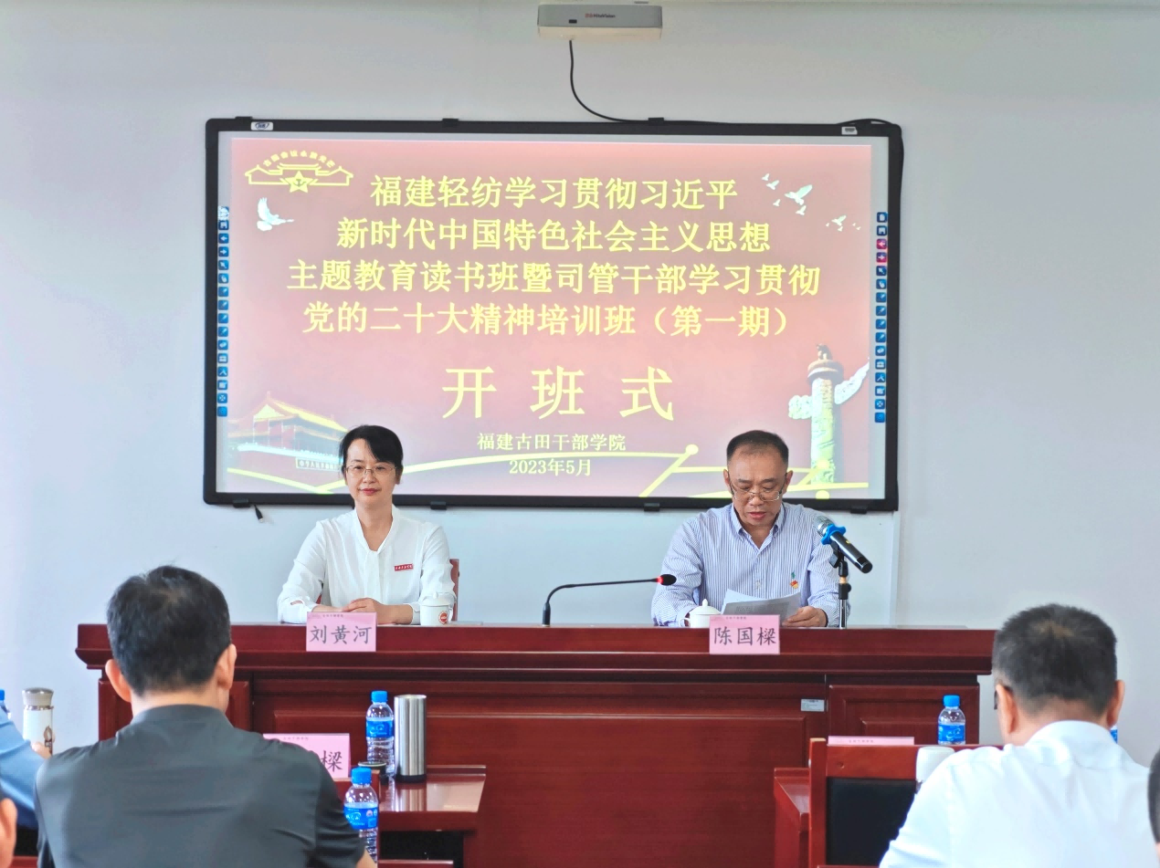 為深入開展學習貫徹習近平新時代中國特色社會主義思想主題教育,全面貫徹落實黨的二十大精神,5月4日至8日,福建輕紡黨委第一期學習貫徹習近平新時代中國特色社會主義思想主題教育專題讀書班暨司管干部學習貫徹黨的二十大精神專題培訓班在古田干部學院開班。公司領導班子成員及司管干部共45人參加學習。公司黨委委員、副總經理陳國樑主持開班式并作動員講話。福建古田干部學院黨委委員、副院長、龍巖市委黨校副校長劉黃河出席開班式并致辭。