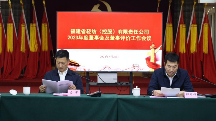 根據(jù)省國(guó)資委黨委的統(tǒng)一安排部署,3月28日,福建輕紡召開董事會(huì)及董事評(píng)價(jià)會(huì),省國(guó)資委黨委委員、副主任左宇出席會(huì)議并講話,省國(guó)資委考分處處長(zhǎng)林新炎等到會(huì)指導(dǎo)。福建輕紡黨委副書記、副董事長(zhǎng)、總經(jīng)理鄭書雄主持會(huì)議并代表董事會(huì)述職,董事會(huì)成員出席會(huì)議并作個(gè)人書面述職。公司在家領(lǐng)導(dǎo)班子成員、董事會(huì)秘書和專門委員會(huì)辦公室負(fù)責(zé)人列席會(huì)議。