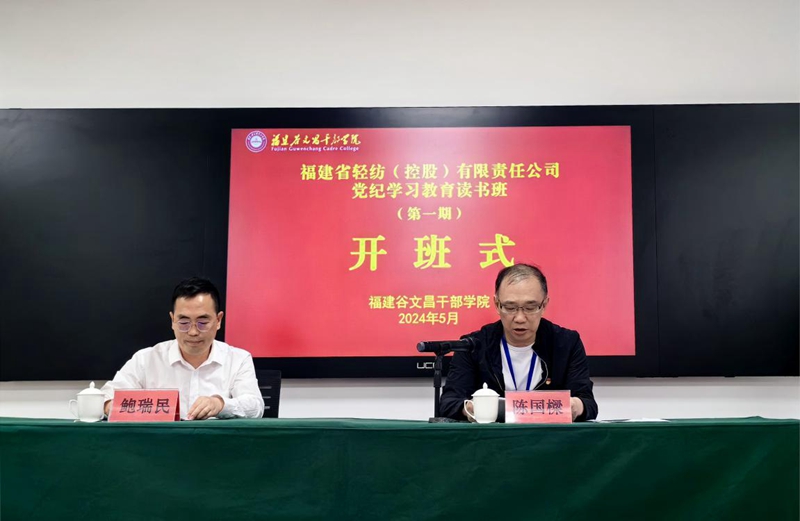 為深入學(xué)習(xí)貫徹習(xí)近平總書記關(guān)于黨紀(jì)學(xué)習(xí)教育的重要講話和重要指示精神,教育引導(dǎo)黨員干部學(xué)紀(jì)、知紀(jì)、明紀(jì)、守紀(jì),推動福建輕紡系統(tǒng)黨紀(jì)學(xué)習(xí)教育走深走實(shí),5月13日,福建輕紡黨紀(jì)學(xué)習(xí)教育讀書班(第一期)在谷文昌干部學(xué)院正式開班。公司領(lǐng)導(dǎo)及司管干部共41人參加學(xué)習(xí)。公司黨委委員、副總經(jīng)理陳國樑主持開班式并作動員講話。福建谷文昌干部學(xué)院副院長鮑瑞民出席開班式并致辭。
