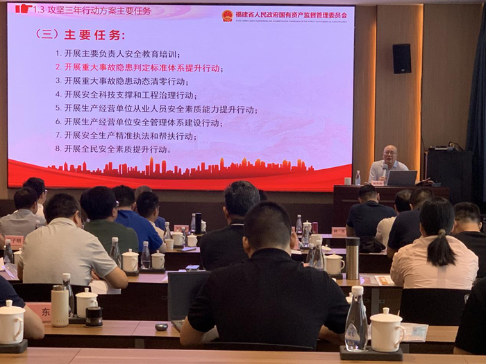 本次培訓(xùn)班采取“專(zhuān)題授課+現(xiàn)場(chǎng)教學(xué)”相結(jié)合的方式開(kāi)展,福建省安全生產(chǎn)科學(xué)研究院副院長(zhǎng)高立結(jié)合自身工作經(jīng)驗(yàn)及心得,向?qū)W員分享交流如何更加有效地落實(shí)企業(yè)安全生產(chǎn)主體責(zé)任,并列舉了大量詳實(shí)且富有代表性的案例;福建省國(guó)資委原一級(jí)調(diào)研員、省政府安全專(zhuān)家黃忠超,對(duì)安全生產(chǎn)治本攻堅(jiān)三年行動(dòng)、新修訂的《福建省安全生產(chǎn)條例》等進(jìn)行重點(diǎn)解讀,分享傳授自身多年安全生產(chǎn)實(shí)踐的經(jīng)驗(yàn)和思考;公司安全監(jiān)督部對(duì)福建輕紡治本攻堅(jiān)三年行動(dòng)具體任務(wù)清單進(jìn)行解讀和說(shuō)明,并將各權(quán)屬企業(yè)2023年度安全生產(chǎn)考核情況進(jìn)行通報(bào)。