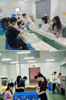組織需要,就是青年突擊隊(duì)集結(jié)的號(hào)角。面對(duì)晶華生物人手緊缺困境,福建輕紡集團(tuán)本部青年突擊隊(duì)聞令而動(dòng),火速支援晶華生物。初至晶華生物廠房,青年突擊隊(duì)隊(duì)員就馬不停蹄加入組裝流水線,學(xué)習(xí)裝盒、印碼、套膜、塑封等相關(guān)知識(shí),活躍在組裝生產(chǎn)各個(gè)環(huán)節(jié)。在學(xué)習(xí)與實(shí)操的有機(jī)結(jié)合中,青年突擊隊(duì)隊(duì)員不斷優(yōu)化工作方式,提高工作效能,僅花費(fèi)兩個(gè)半小時(shí)就超額完成上午既定包裝任務(wù)。在支援生產(chǎn)之余,青年突擊隊(duì)隊(duì)員利用午休時(shí)間參觀了晶華生物現(xiàn)代化生產(chǎn)設(shè)施,對(duì)晶華生物各類產(chǎn)品的生產(chǎn)流程有了更為具象化的認(rèn)識(shí),也加深了對(duì)晶華生物生產(chǎn)經(jīng)營業(yè)務(wù)內(nèi)容的理解。