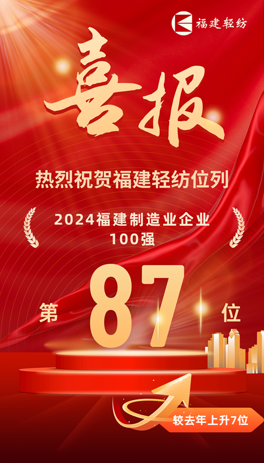 喜報(bào)!福建輕紡繼續(xù)榮登2024福建制造業(yè)企業(yè)100強(qiáng)等榜單