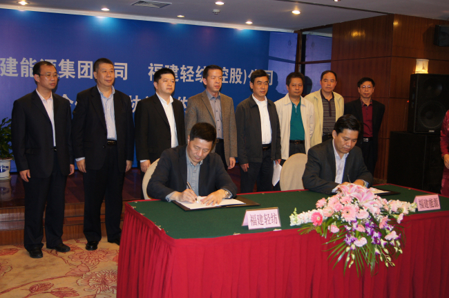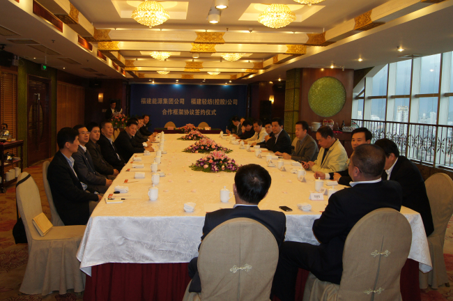2012年11月23日上午,公司和福建省能源集團(tuán)有限責(zé)任公司在美倫華美達(dá)大飯店正式簽署合作框架協(xié)議,根據(jù)協(xié)議,雙方就重點推進(jìn)煤炭、水泥包裝袋、工業(yè)固體排放物、港口裝卸和文化紙等項目進(jìn)行合作。公司董事長吳冰文、福能集團(tuán)董事長林金本及公司其他領(lǐng)導(dǎo)、主要權(quán)屬企業(yè)負(fù)責(zé)人和有關(guān)部門人員20多人參加了簽約儀式,省國資委副主任邱志向、綜合處副處長羅奮應(yīng)邀出席,邱副主任代表省國資委做重要講話。