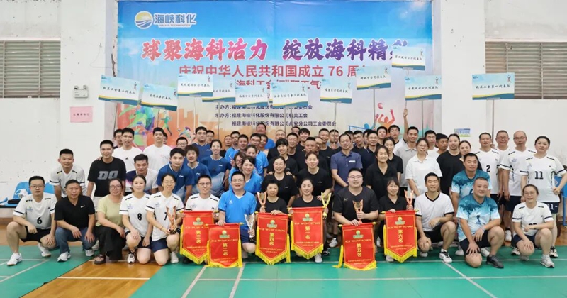 海峽科化公司舉辦慶祝新中國成立76周年暨第三屆“??乒甭毠馀徘蛸?。賽場上,12支代表隊運動員們?nèi)σ愿?、默契配合,在攻防交替中充分彰顯“協(xié)同拼搏、追求卓越”的??凭瘢鷦釉忈屃恕吧舷峦?、風(fēng)雨同舟”的團隊理念。大家紛紛表示,將把賽場上的激情與活力延續(xù)到工作中,以飽滿的熱情為推動海峽科化公司高質(zhì)量發(fā)展注入新動力。