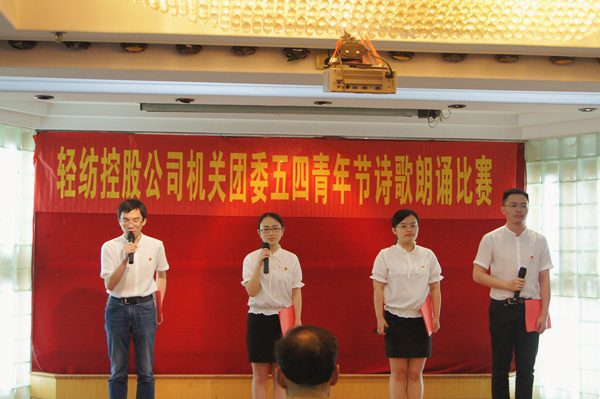 為深入學習貫徹習近平新時代中國特色社會主義思想和黨的十九大精神,弘揚“五四”精神,展示福建輕紡團員青年在“再上新臺階、建設(shè)新福建”中的使命擔當和精神風貌,5月4日,由福建輕紡機關(guān)團委主辦的“五四“青年節(jié)詩歌朗誦比賽在公司四樓會議室舉行,公司黨組副書記、總經(jīng)理黃文定,黨組成員、副總經(jīng)理陳國樑、本部各部室負責人、各權(quán)屬企業(yè)黨組織負責人到現(xiàn)場觀摩、指導(dǎo)。