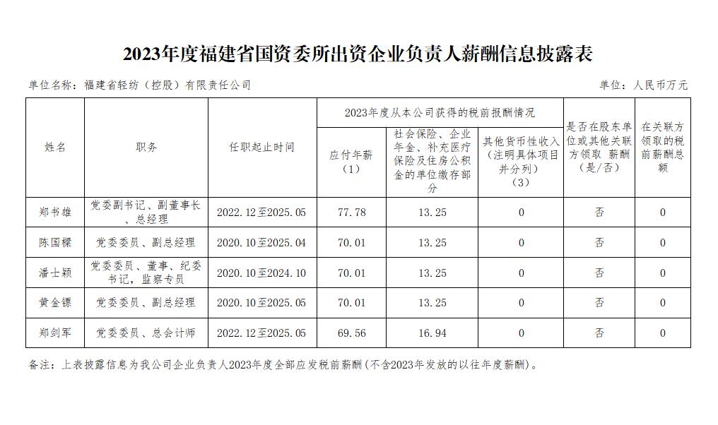 福建省國(guó)資委所出資企業(yè)負(fù)責(zé)人2023年度薪酬信息披露表