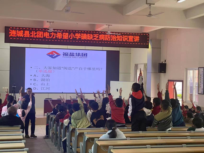 在入?;顒?dòng)中,龍巖鹽業(yè)工作人員向?qū)W生科普碘缺乏病相關(guān)知識(shí),開(kāi)展現(xiàn)場(chǎng)即時(shí)互動(dòng),累計(jì)發(fā)放宣傳折頁(yè)1800余份,積極倡導(dǎo)“食用碘鹽是預(yù)防碘缺乏病最簡(jiǎn)便、安全、有效的方式”,在寓教于樂(lè)的氛圍中讓學(xué)生參與學(xué)習(xí)碘缺乏病防治知識(shí),共同筑牢兒童健康“防護(hù)網(wǎng)”。