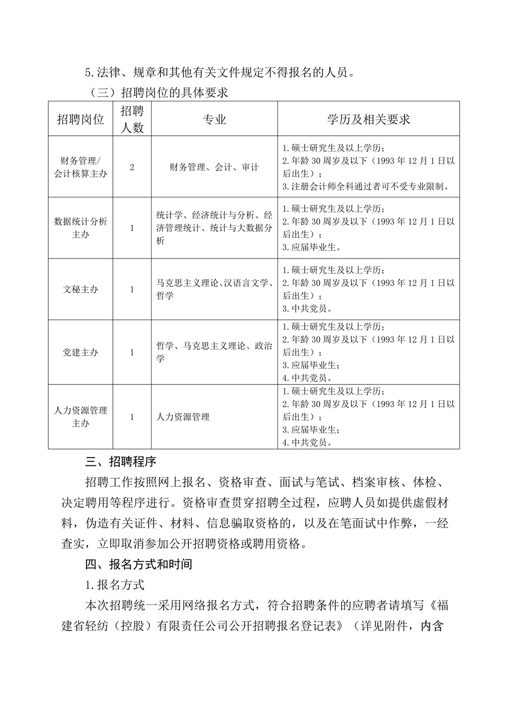 福建省輕紡(控股)有限責(zé)任公司 2023年度秋季對(duì)外公開招聘公告